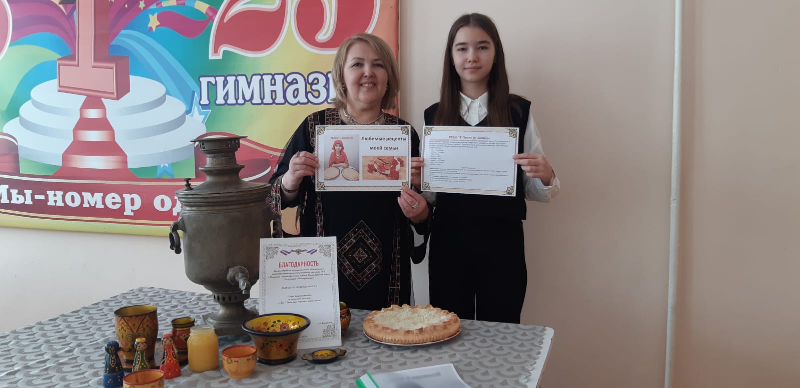 21 февраля семья Байдавлетовых приняла участие в Республиканском Дне «Любимые рецепты нашей семьи». Ученица 7в класса Камилла с мамой Гульнарой Зиннатовной приготовили Балан бэлеше (Пирог с калиной), поделились секретами приготовления теста и начинки для пирога, рассказали о семейных традициях. Также мама Камиллы активно ведет свой канал на YouTube, в котором размещает видеорецепты приготовления любимых семейных блюд. Семья награждена благодарственным письмом за активное участие в мероприятии! #правильноепитание #любимыерецептымоей семьи #гимназия1