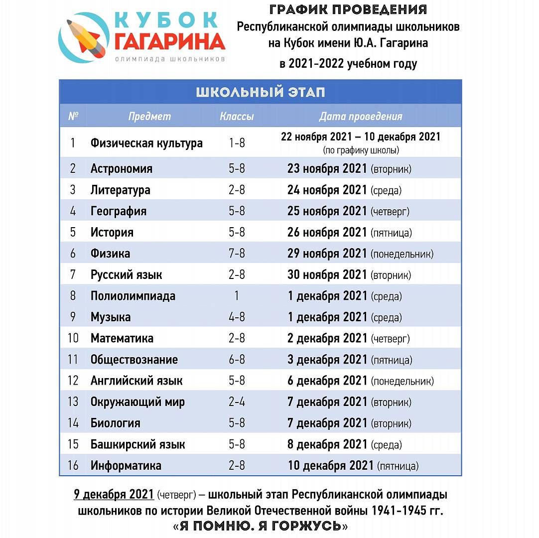 Республиканская олимпиада на кубок имени Ю.А.Гагарина