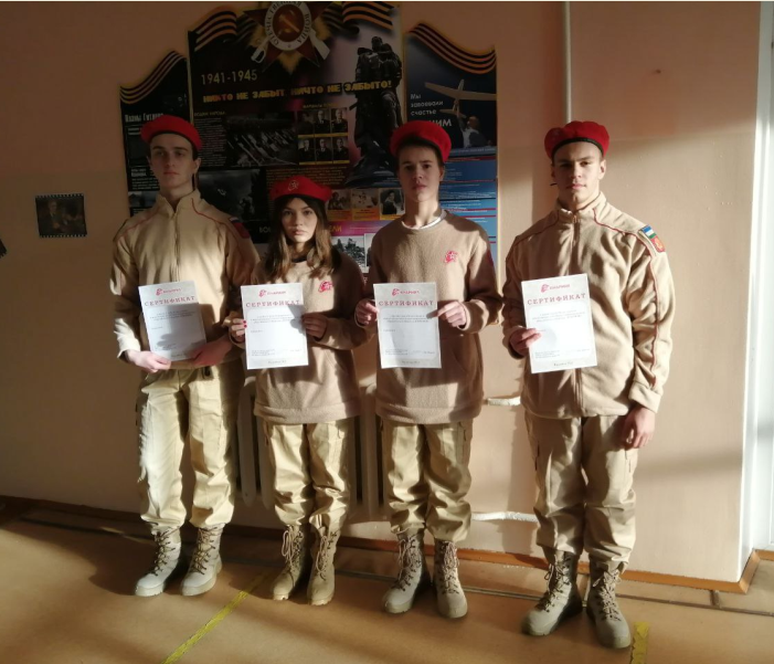Каждому юнармейцу выпала честь принести торжественную клятву: всегда быть верным своему Отечеству, соблюдать устав «ЮНАРМИИ», следовать традициям доблести, отваги и товарищеской взаимовыручки, защищать слабых, стремиться к победам в учебе и спорте, чтить память героев. В знак принятия в ряды Движения каждый участник получил сертификат.